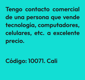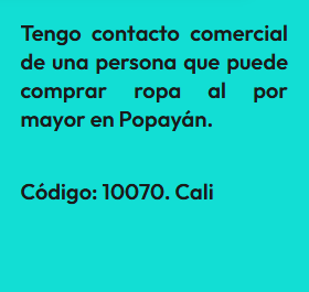 En esta sección encontrarás Anuncios de personas que tienen un negocio ya establecido y lo ofrecen para que alguna persona se interese en trabajarlo en sociedad como emprendimiento. En la sociedad que se forma las ganancias son en proporción al valor de lo aportado. El anuncio se identifica bajo un código, para proteger la identidad del Aportante. Por lo tanto, si estas interesado(a) en algún Aporte, debes registrarte e indicar el código que identifica el Aporte de tu interés y estará sujeta a aprobación por el Aportante. Así mismo, si deseas publicar un Aporte, ingresa a registro y diligencia el formulario respectivo.